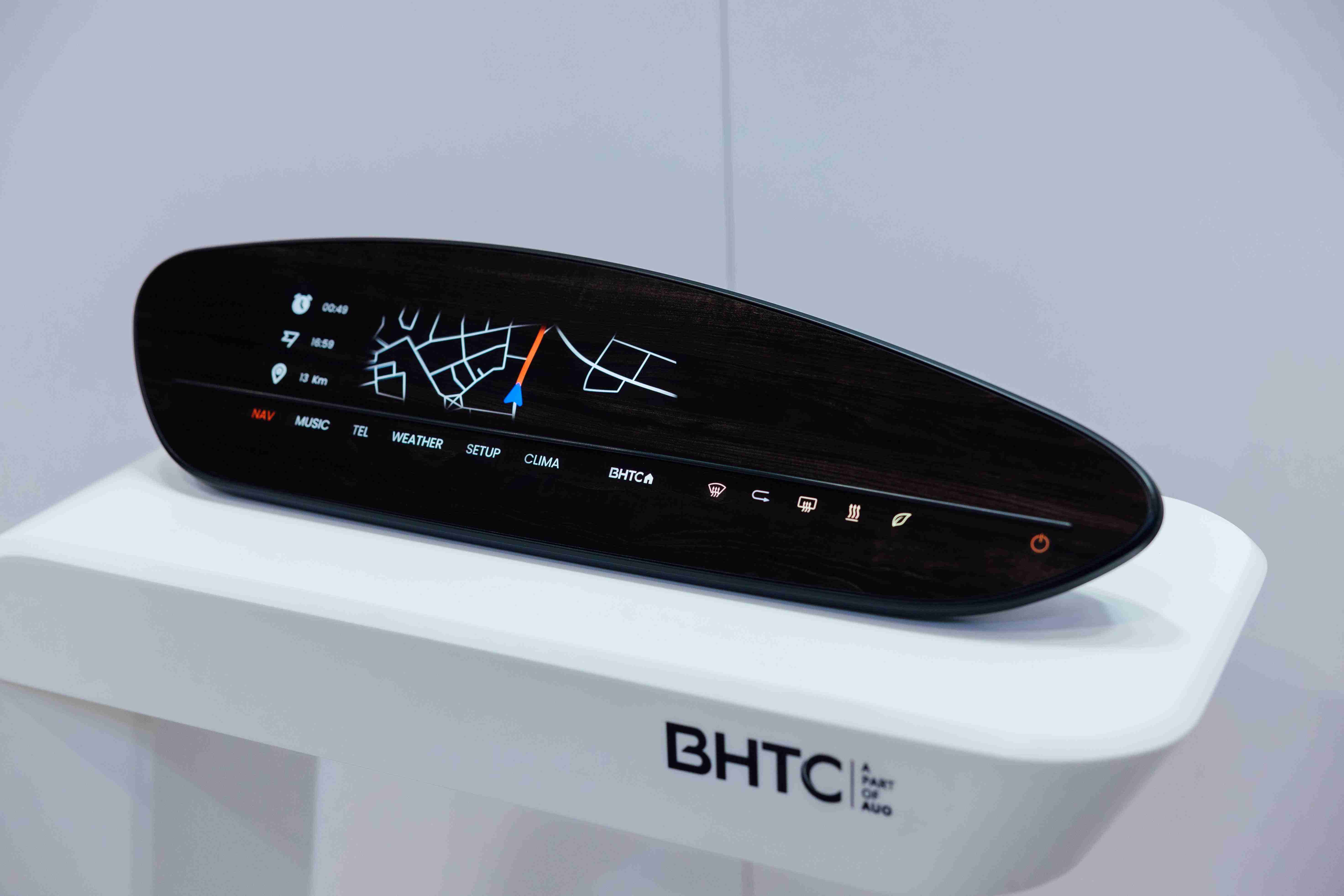 BHTC的木纹车用显示器(Display Behind Wood)将无缝木质表面与显示器结合后,,可以融入车内设计中,,提供驾驶优质的视觉效果,,加上其无边框的设计和亮度调控,,,,创造更优质的车内体验。。
