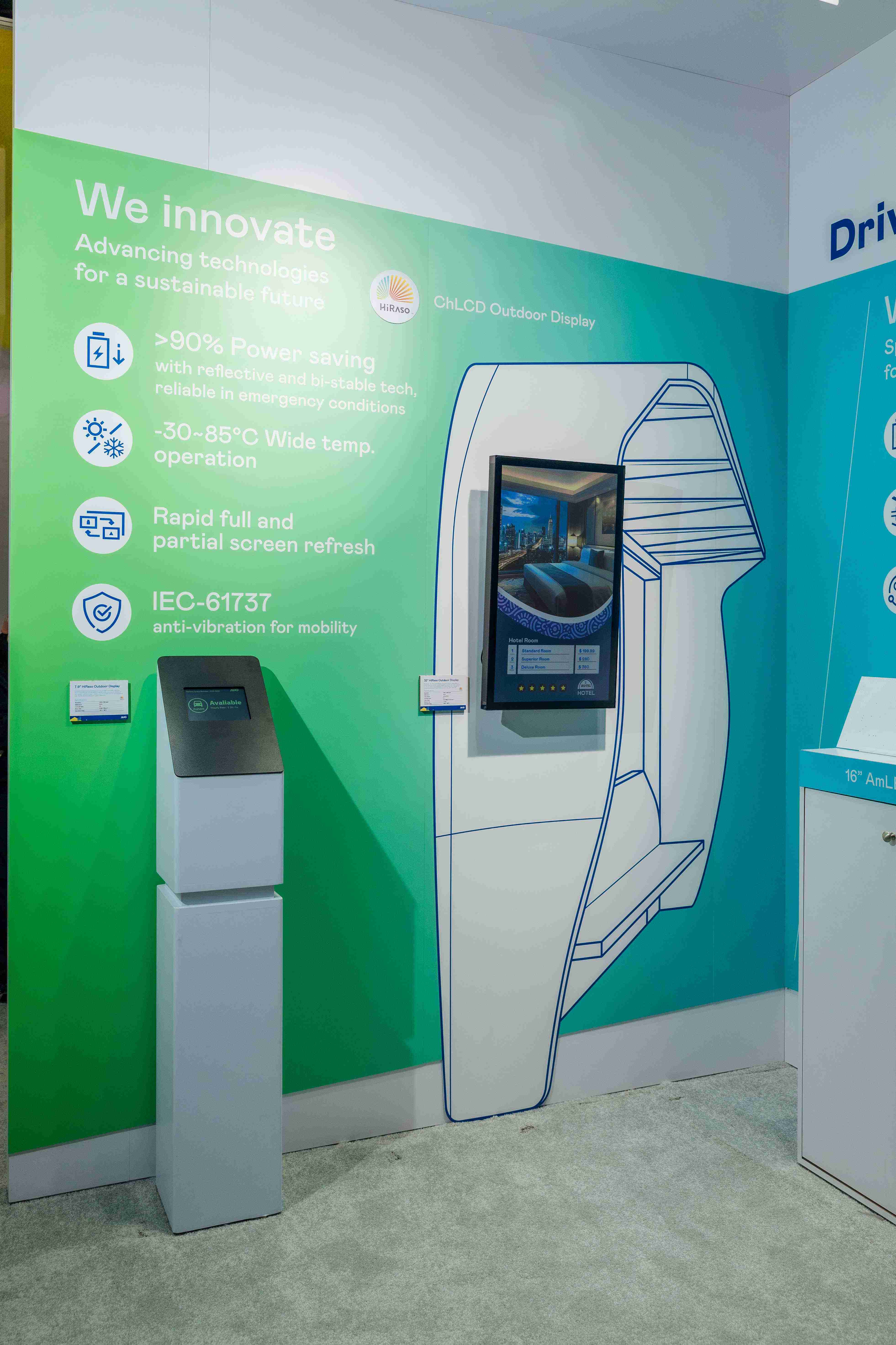 HiRaso胆固醇液晶显示器运用反射环境光线的方式,,,呈现影像显示时零耗能的环保省电诉求,,光线愈强愈能呈现绝佳的色彩饱和度及显示效果,,,,同时在摄氏-30度至85度间宽温的使用优势,,,,为户外电子看板的新首选。。。。