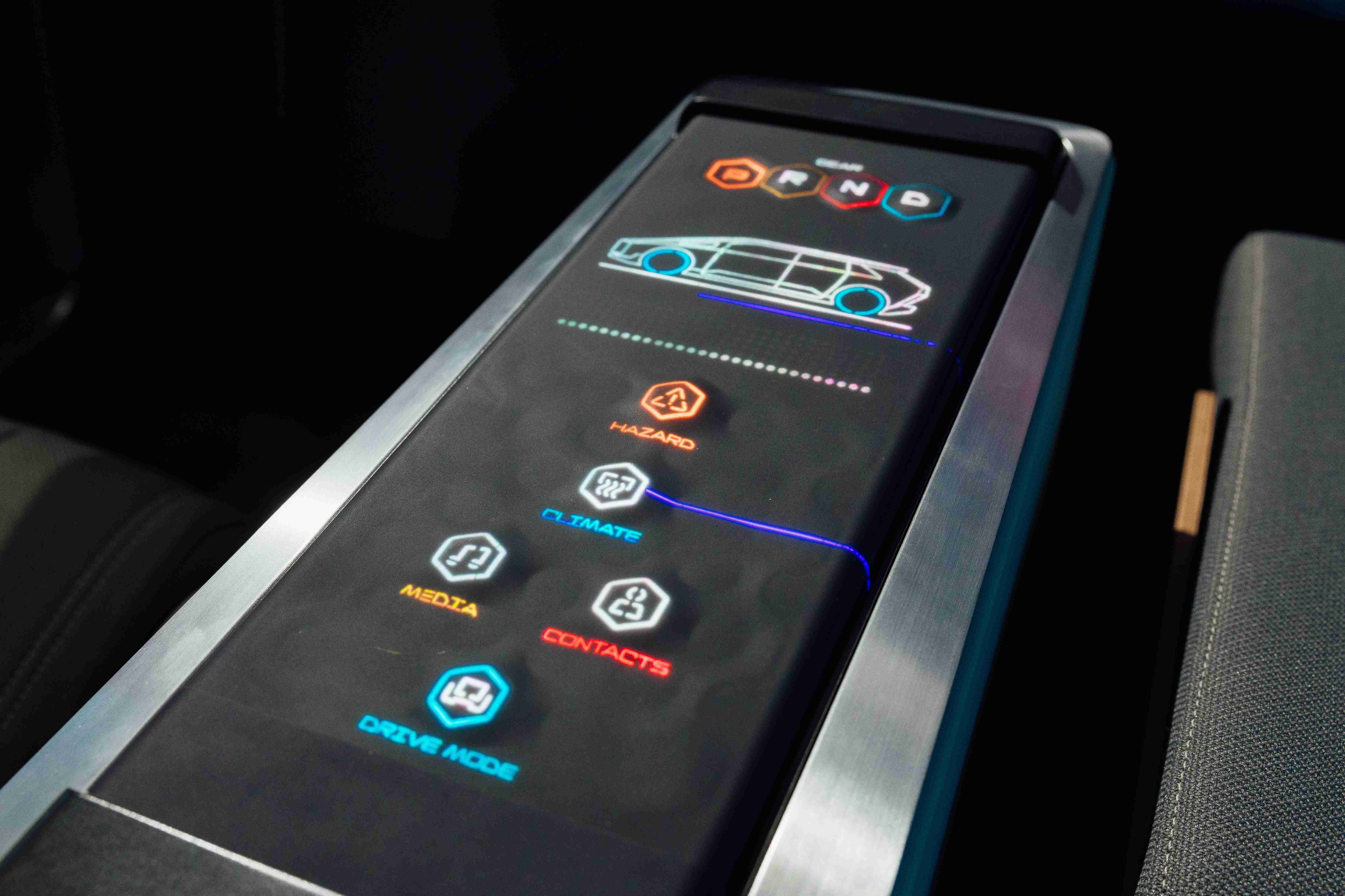多变形态中控显示(Morphing Center Control)拥有动态变化的表面,,平时常态显示车辆功能,,进一步操作时,,,则会隆起成为3D 按钮,,并在触控时以震动回馈,,,,以精细的操作开创人机互动新境界。。
