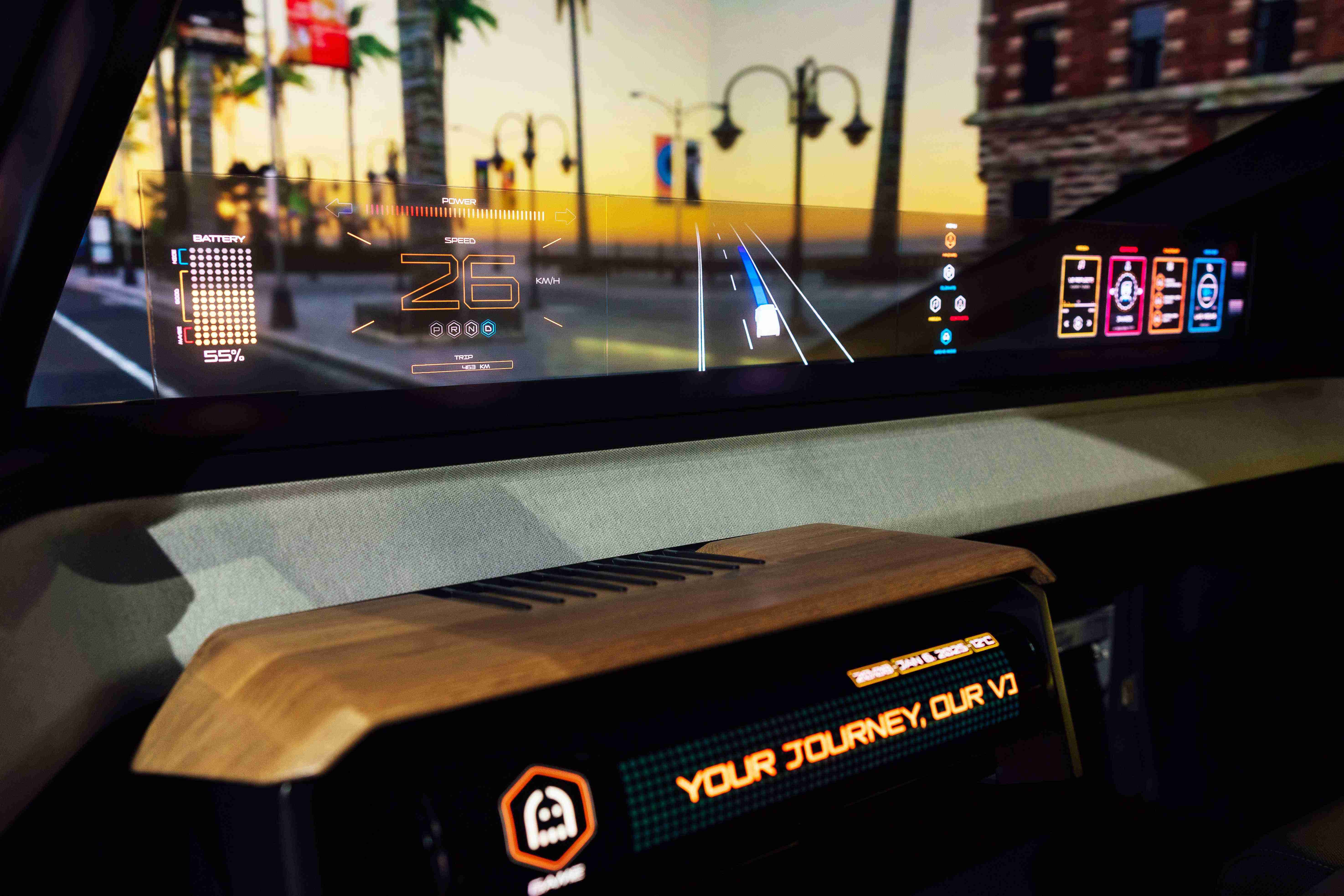 幻境全景天幕(Virtual Sky Canopy)将无缝拼接大型化的透明Micro LED显示器融入至天窗,,,,带来沉浸式体验,,,将人机介面扩展至整个座舱。。。。