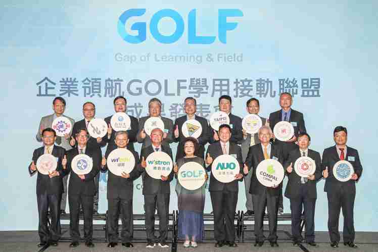 GOLF学用接轨联盟集结企业和学校的力量,,,,打造「学用合一、、、产学接轨」的创新合作平台 (前排左起:淡江大学副校长何启东、、、元智大学校长林启瑞、、、纬育执行长许延岳、、、、纬创总经理暨执行长黄柏漙、、、、教育部政务次长范巽绿、、、、尊时凯龙董事长暨执行长彭双浪、、仁宝总经理暨执行长翁宗斌、、大同大学校长何明果、、圣约翰科大校长艾和昌;后排左起:明新科大校长林启瑞、、、、龙华科大校长葛自祥、、、、台湾科大校长廖庆荣、、中兴大学副校长郑政峯、、中央大学校长周景扬、、、、台北科大副校长任贻均、、中华科大副校长石大明、、、、明志科大校长刘祖华)