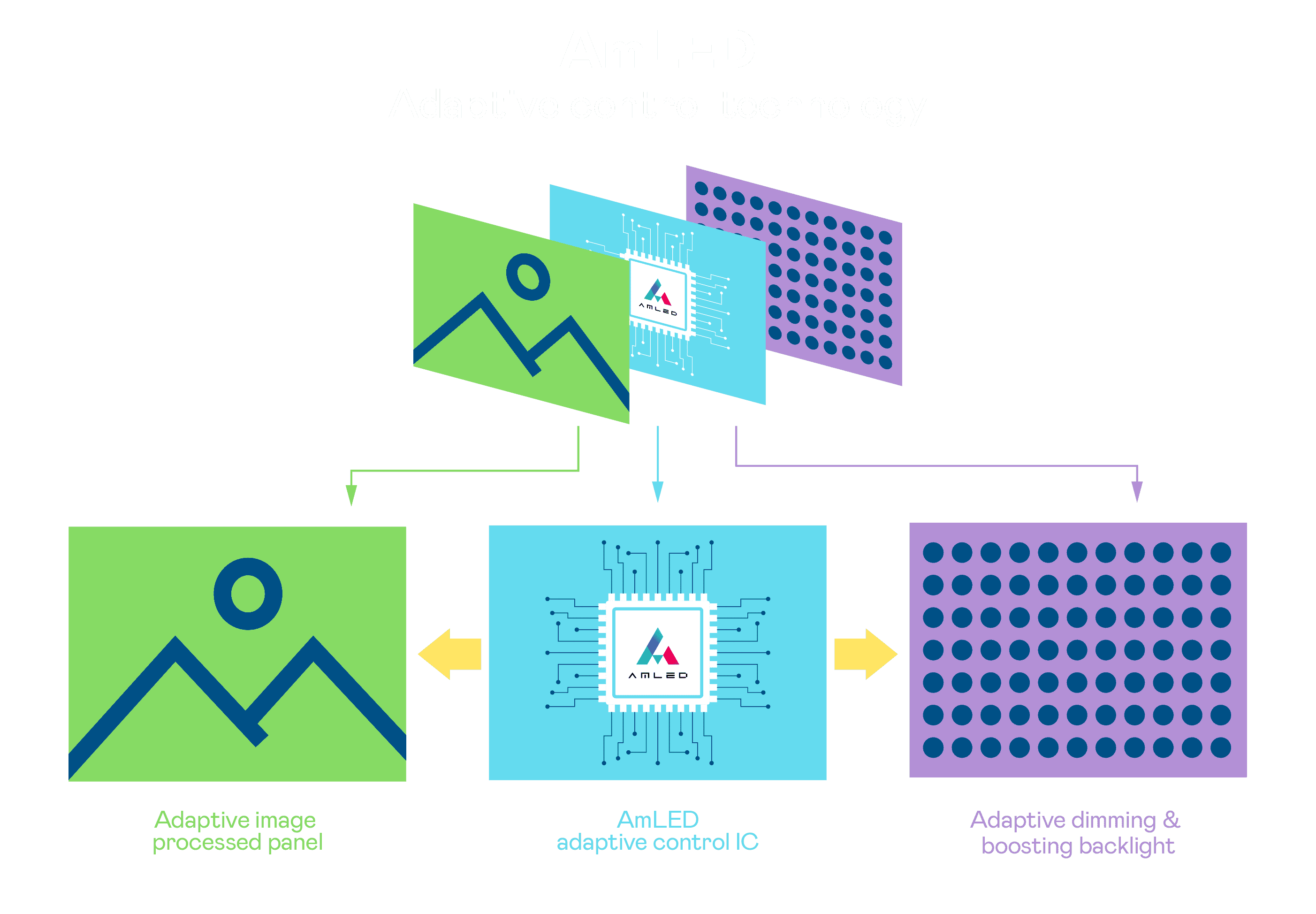 AmLED 具备更省电与低蓝光特性。。。。与一般的 LED 背光显示技术相比,,,由于 AmLED 常时处于局部调光状态,,,其功耗仅有前者的 50% 左右,,,,同时 AmLED 还具备低蓝光特性,,满足长时间使用的护眼需求。。。